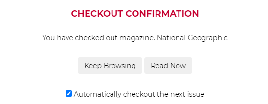 PS- If you really enjoy a magazine you can have RBDigital automatically check that title out to you when the next issue comes out. They will then e-mail you when the issue is available. Just check on the box after you check out the current issue.